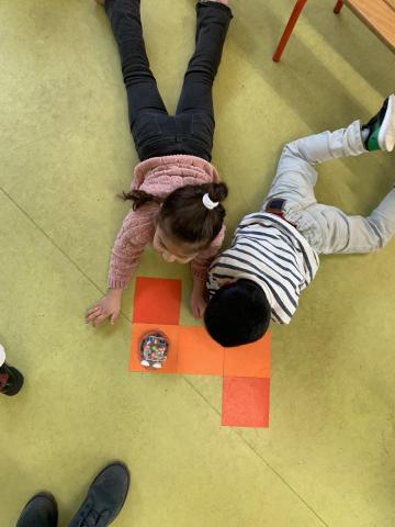 Les élèves ont pu programmer le déplacement d'un personnage sur tablette, programmer un vrai robot sur un parcours et "programmer" un camarade de classe qui devait se déplacer en fonction des déplacements demandés par un autre élève.